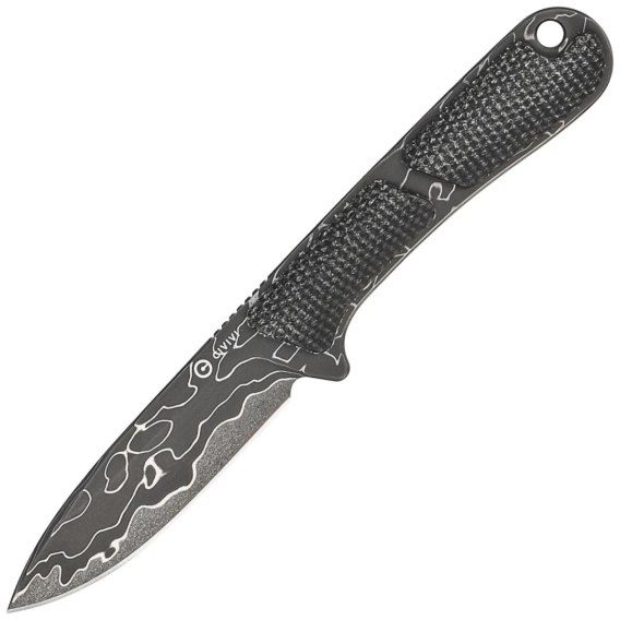 Mini Elementum Fixed Dark Green Micarta, Damascus, nieduży nóż EDC o stałym ostrzu z popularnej rodziny Elementum firmy Civivi. Kształt ostrza to klasyczny drop point ze stali Nitro-V, rękojeść z G10. Pochwa z kydexu, łańcuszek kulkowy do zawieszenia na szyi. Doskonały towarzysz codziennych zajęć!